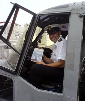 "An excellent piece of kit" - POAC Andy Johnson RN, Aircraft Controller, in Lynx cockpit with 1st Edition of WAM on HMS Endurance in Edinburgh 17 June 2006.