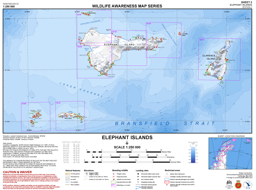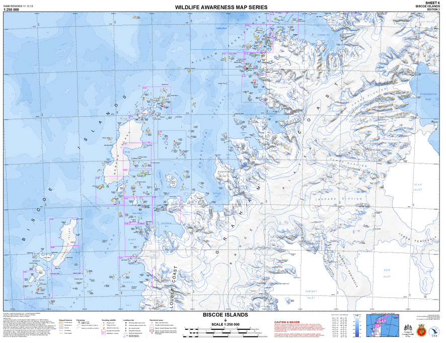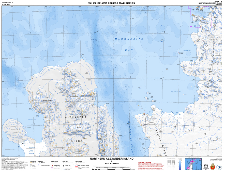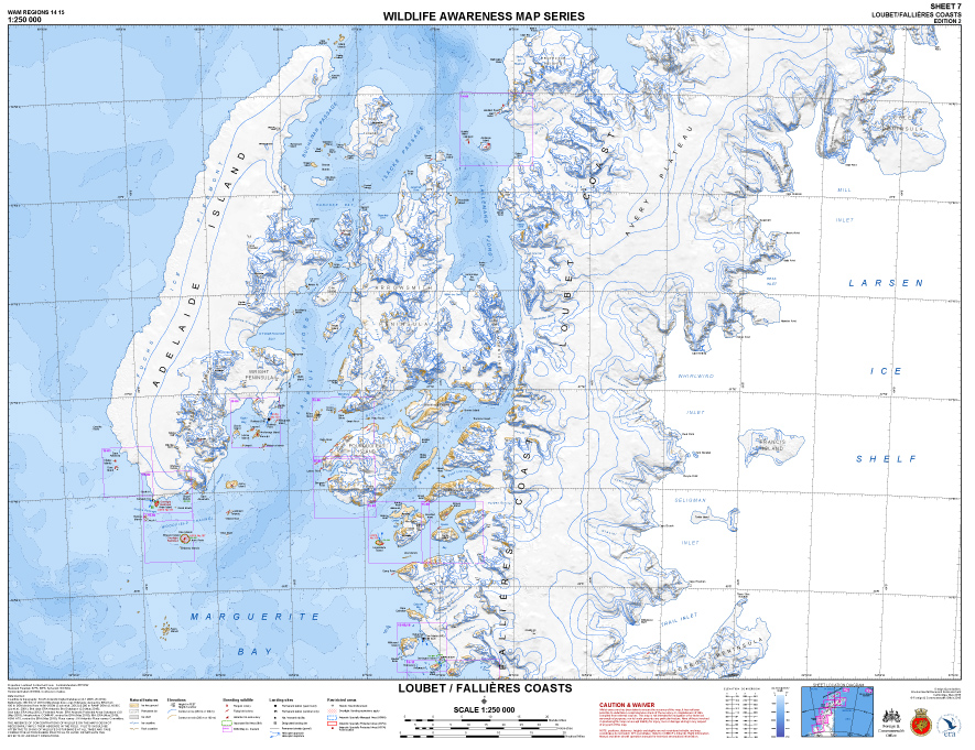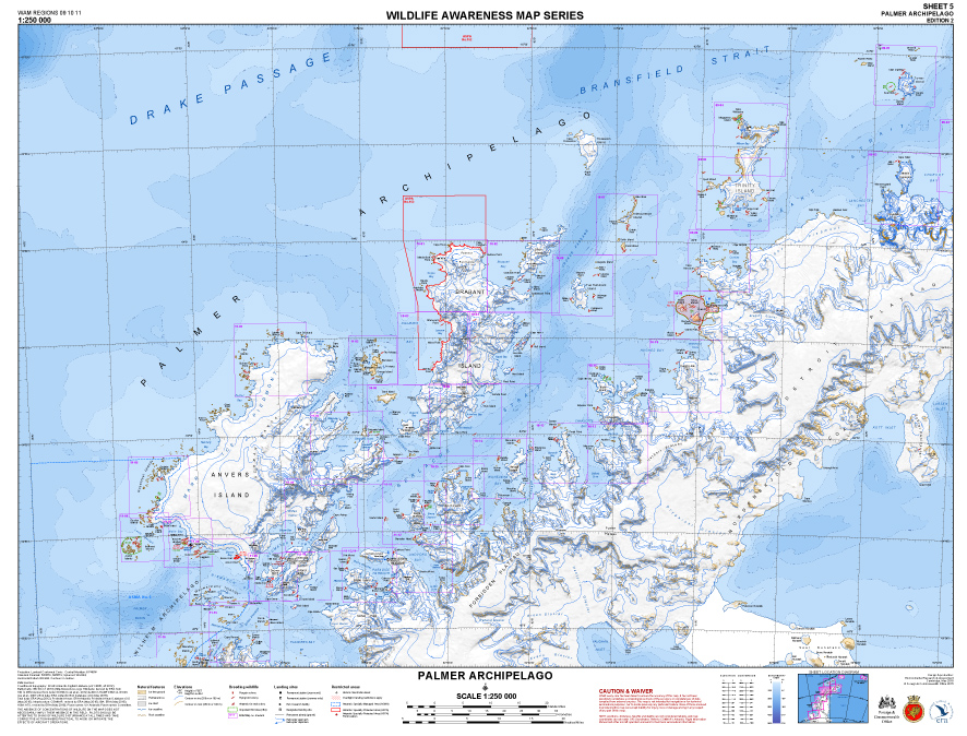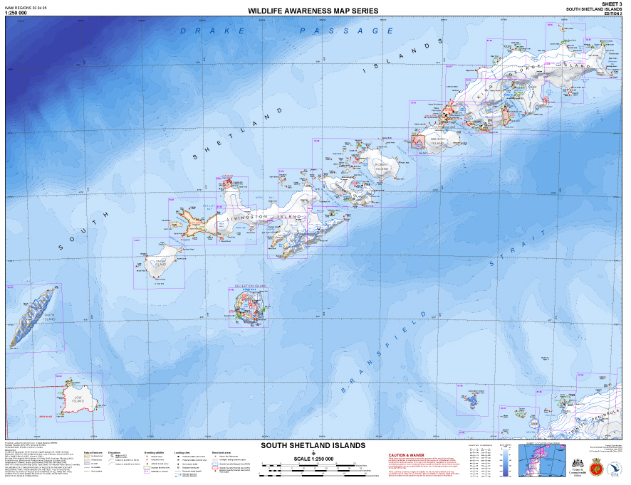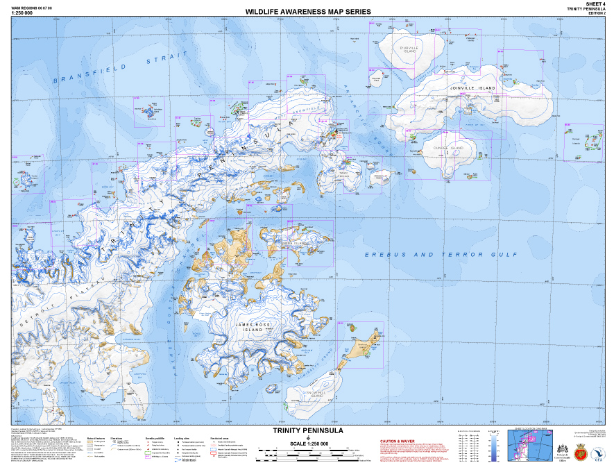 ERA has completed the Second Edition of the Wildlife Awareness Map Series, which at a scale of 1:250 000 covers the Antarctic Peninsula, South Shetland Islands and South Orkney Islands. There are eight maps in the series: